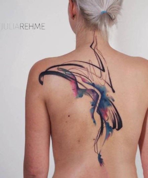 女生后腰纹身黑白灰风格抽象线条纹身图案
