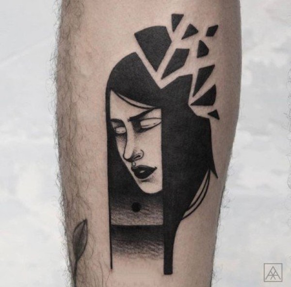 花腿纹身--一组大黑腿纹身图案作品欣赏