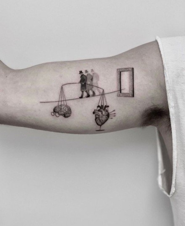 心脏纹身图案 女生手臂上黑灰纹身心脏纹身图案