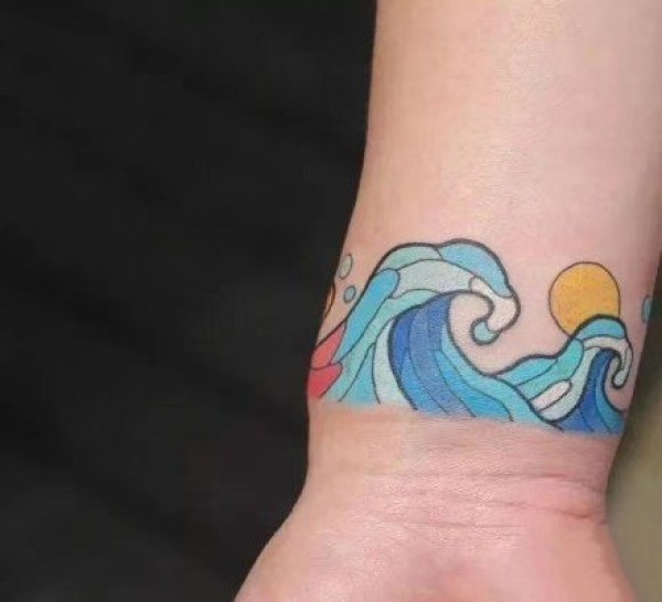 几何点刺小清新个性对称的海浪纹身图案手稿