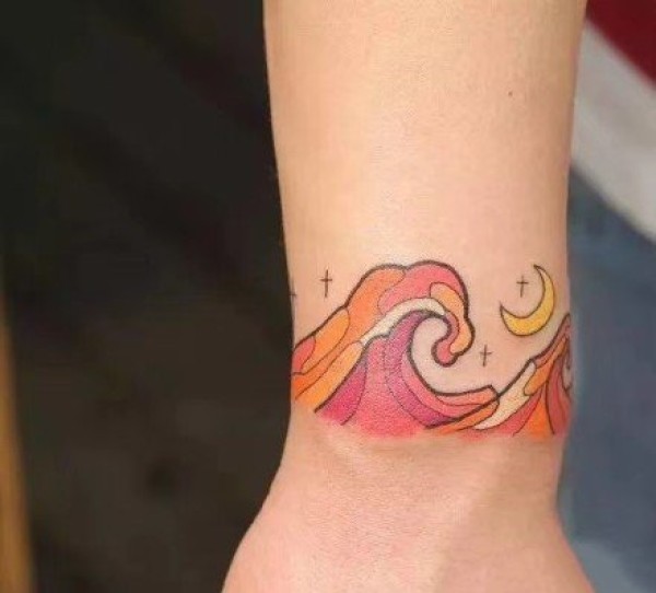 几何点刺小清新个性对称的海浪纹身图案手稿