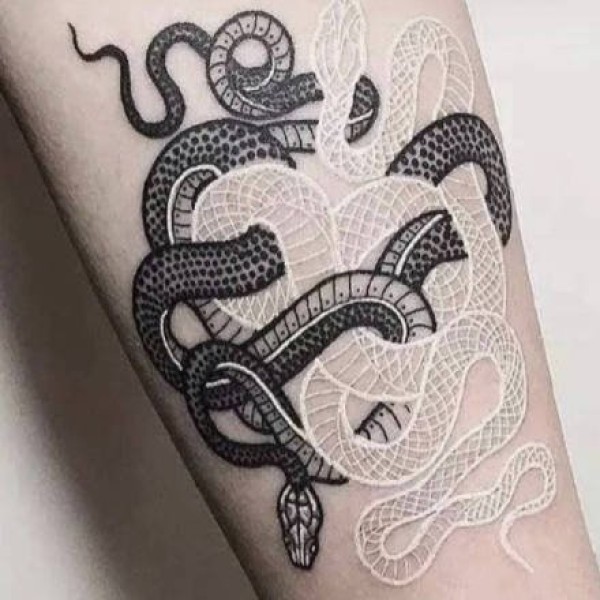 黑色和白色手臂眼镜蛇纹身动物几何点刺纹身图案