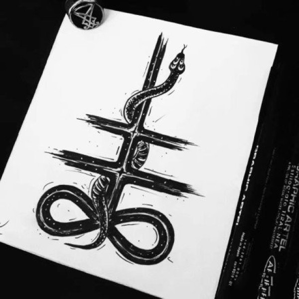 school蛇菊花霸气纹身图案手稿