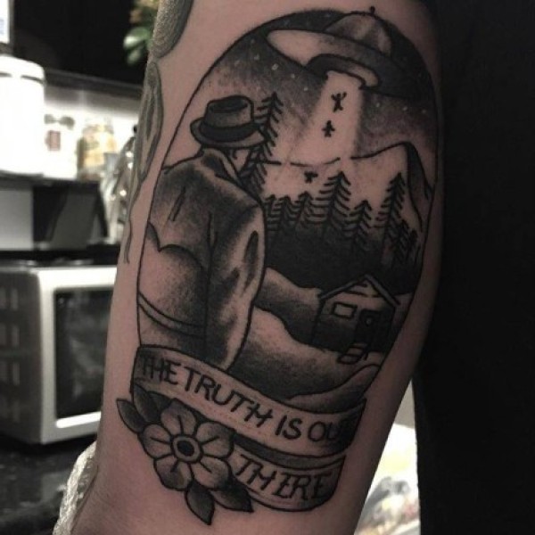 飞碟纹身图案 男生手臂上月亮和飞碟纹身图片