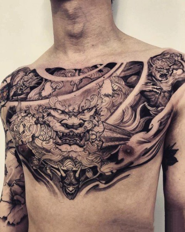 花胸纹身--一组男性霸气的大花胸纹身图案作品欣赏