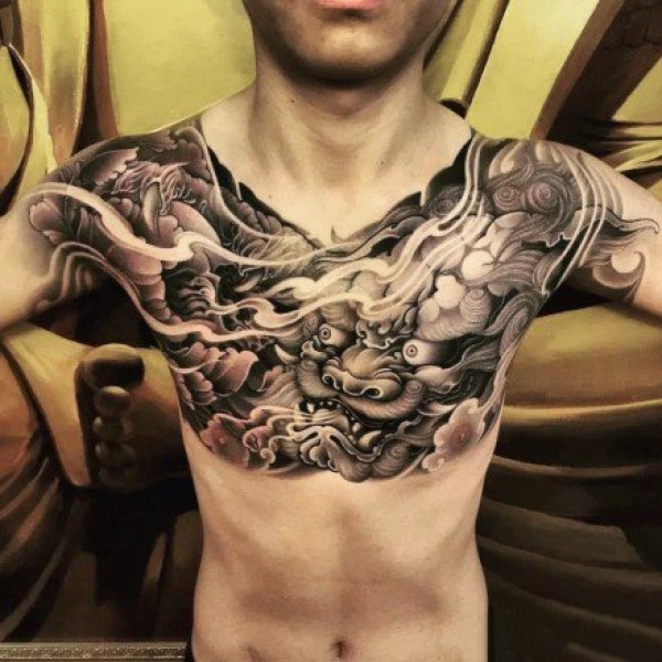花胸纹身--一组男性霸气的大花胸纹身图案作品欣赏