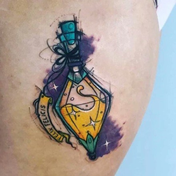 school风格的彩色瓶瓶罐罐瓶子纹身图案