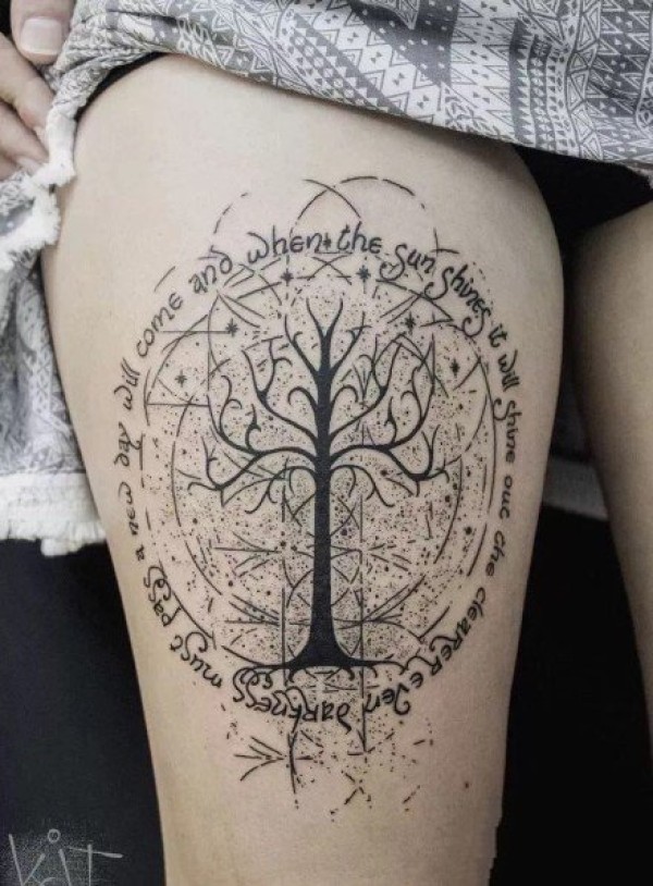 纹身树枝 枝繁叶茂的树枝纹身图案