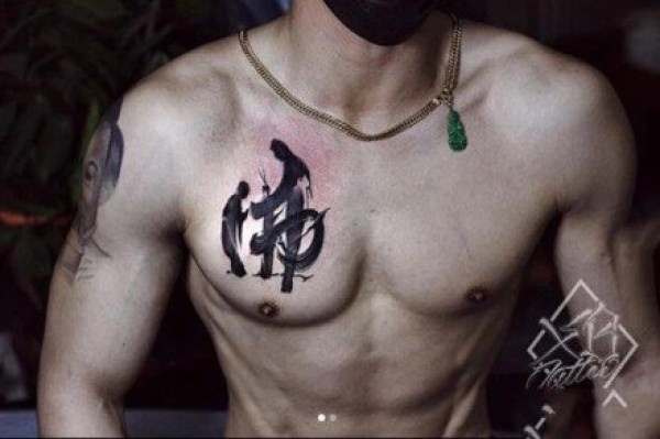 水墨书法风格的纹身-每个字背后都蕴含着深刻的含义