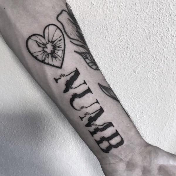 心脏纹身图案 女生手臂上黑灰纹身心脏纹身图案