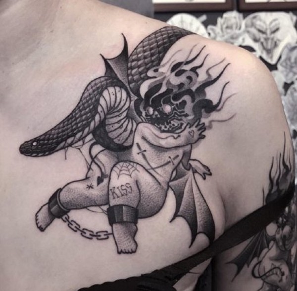纹身小天使 西方爱神丘比特小天使的纹身图片