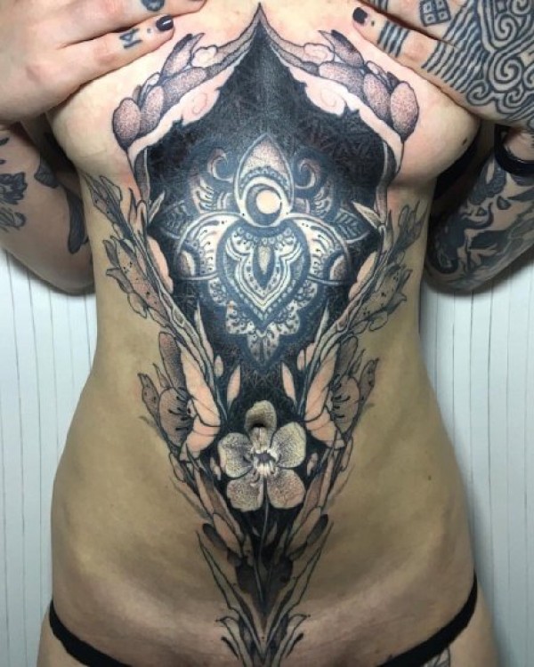 女性胸部到小腹部个性的纹身图案9张