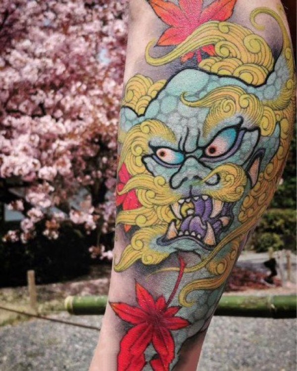 日式风格的传统花腿纹身作品欣赏