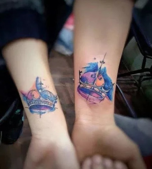 情人同款K&Q的国王皇后的皇冠纹身图案欣赏