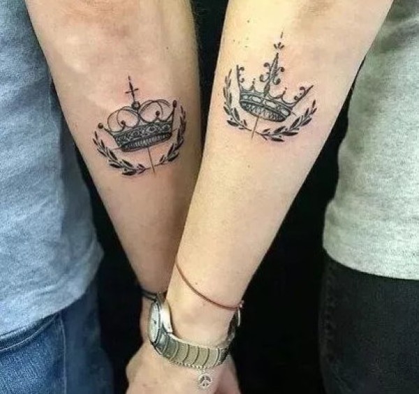 情人同款K&Q的国王皇后的皇冠纹身图案欣赏