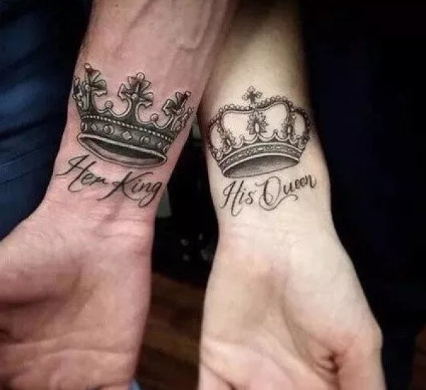 情人同款K&Q的国王皇后的皇冠纹身图案欣赏