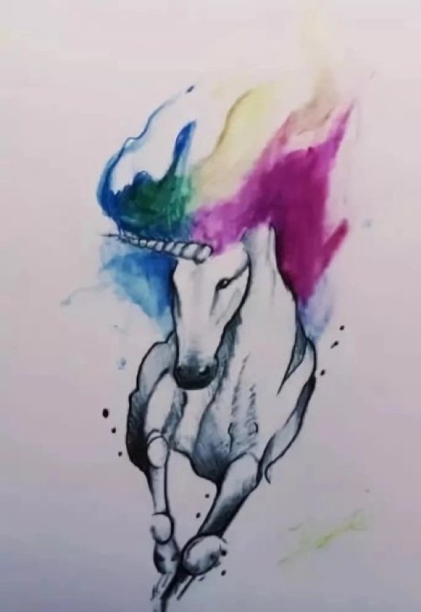 女生喜欢的独角兽的一组纹身图案和手稿9张