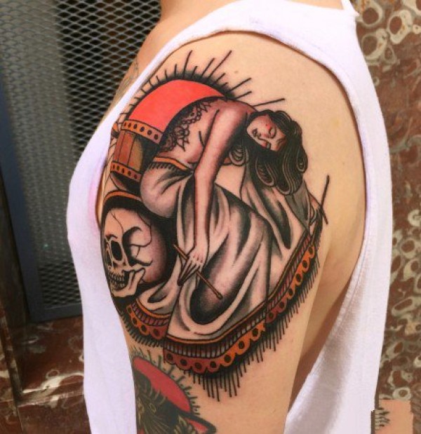 27张红色调风格的school女郎纹身图案
