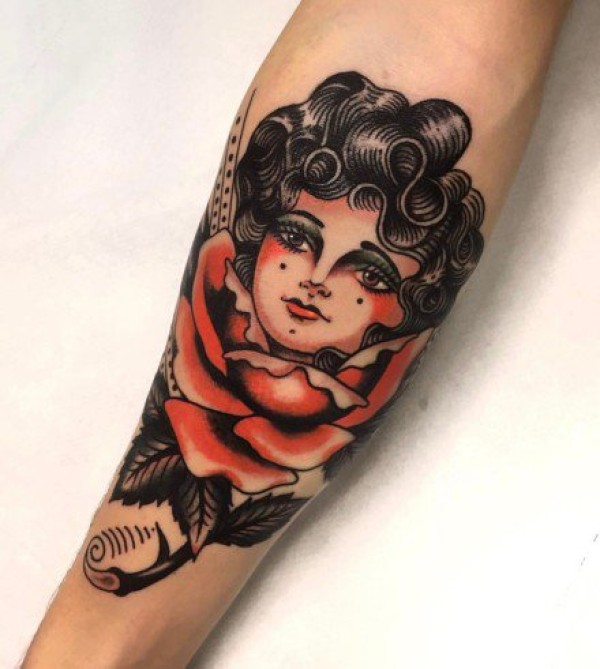 27张红色调风格的school女郎纹身图案
