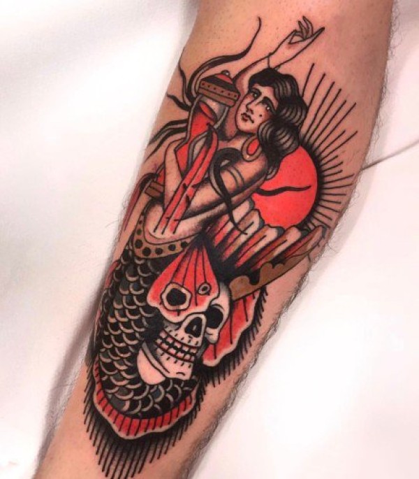 27张红色调风格的school女郎纹身图案