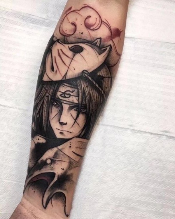 手臂上的火影忍者鸣人佐助卡卡西等角色动漫纹身图案