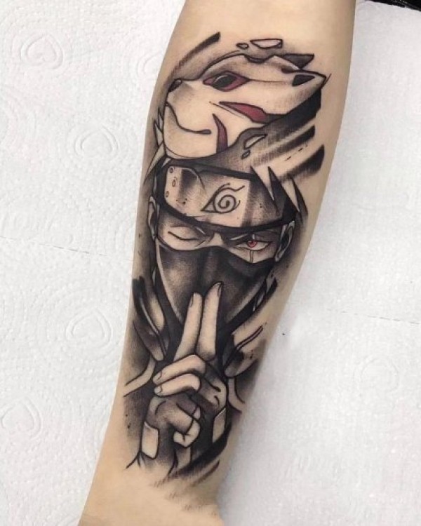 手臂上的火影忍者鸣人佐助卡卡西等角色动漫纹身图案