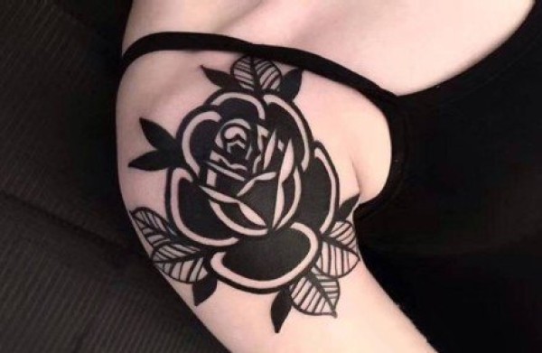 黑色玫瑰花纹身图案-9张黑色的玫瑰花纹身图片