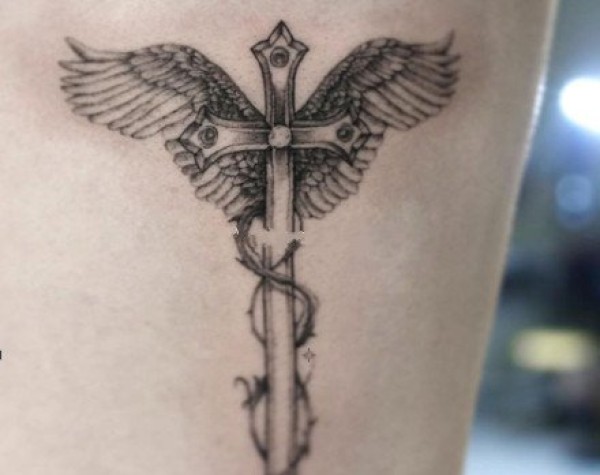 男生背部翅膀十字架纹身_翅膀纹身图案大全_纹身图吧