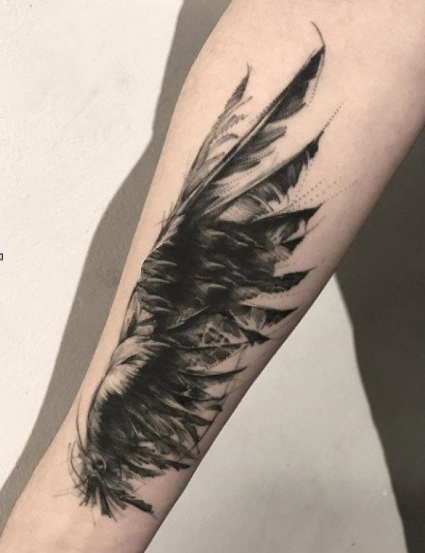 霸气翅膀:适合男性的一组霸气翅膀纹身图案9张
