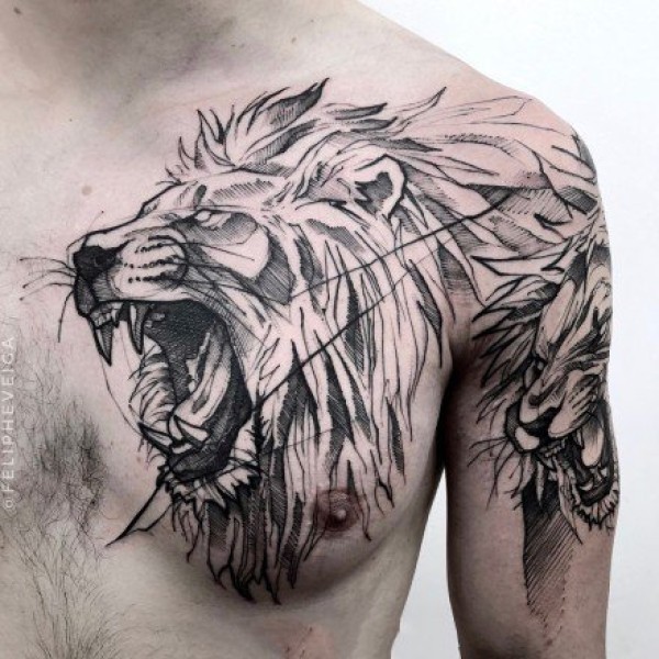 纹身狮子头手稿 简单线条纹身素描黑色纹身狮子头手稿