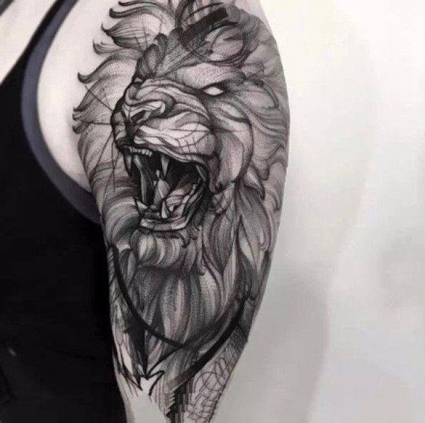 纹身狮子头手稿 简单线条纹身素描黑色纹身狮子头手稿