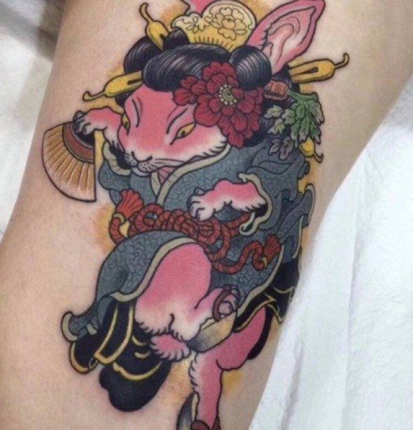 日式传统兔子老鼠青蛙等小彩色纹身图案