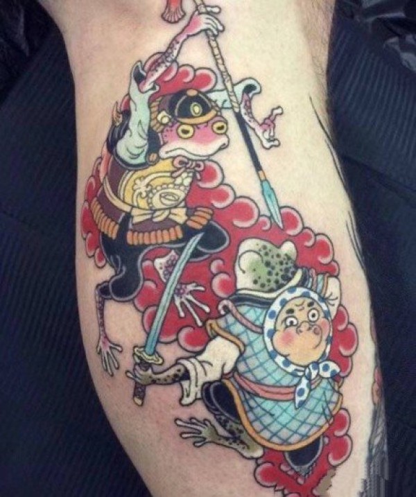 日式传统兔子老鼠青蛙等小彩色纹身图案