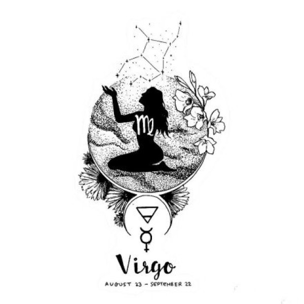 处女座星座符号.采用人物头部的头发巧妙的遮盖