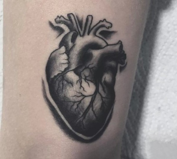 心脏纹身图案 女生手臂上黑灰纹身心脏纹身图案