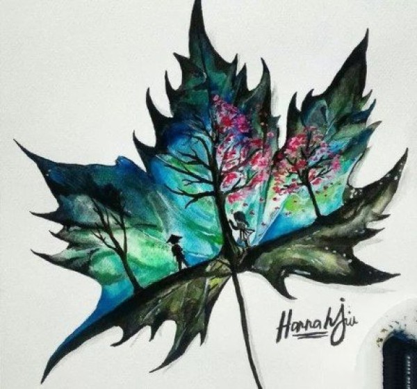 梦幻彩色的枫叶纹身图片手稿作品