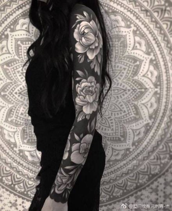 欧美花臂纹身_22张霸气黑灰欧美大黑花臂纹身图案作品图片
