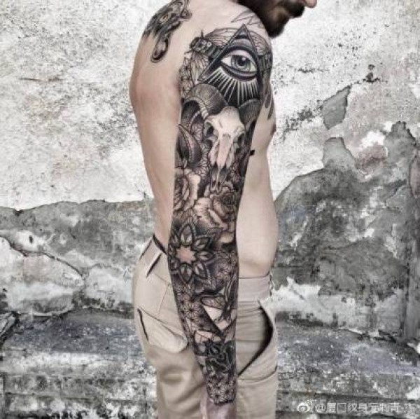 欧美花臂纹身_22张霸气黑灰欧美大黑花臂纹身图案作品图片