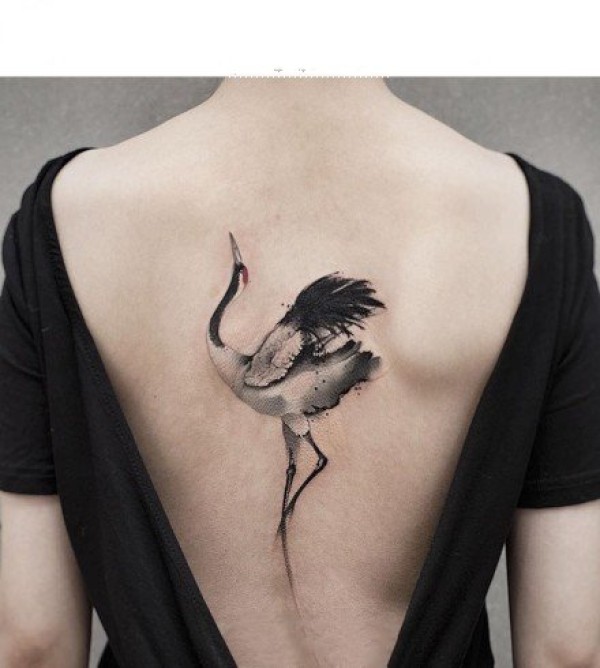 仙鹤纹身--中国风水墨元素的一组仙鹤纹身图案作品