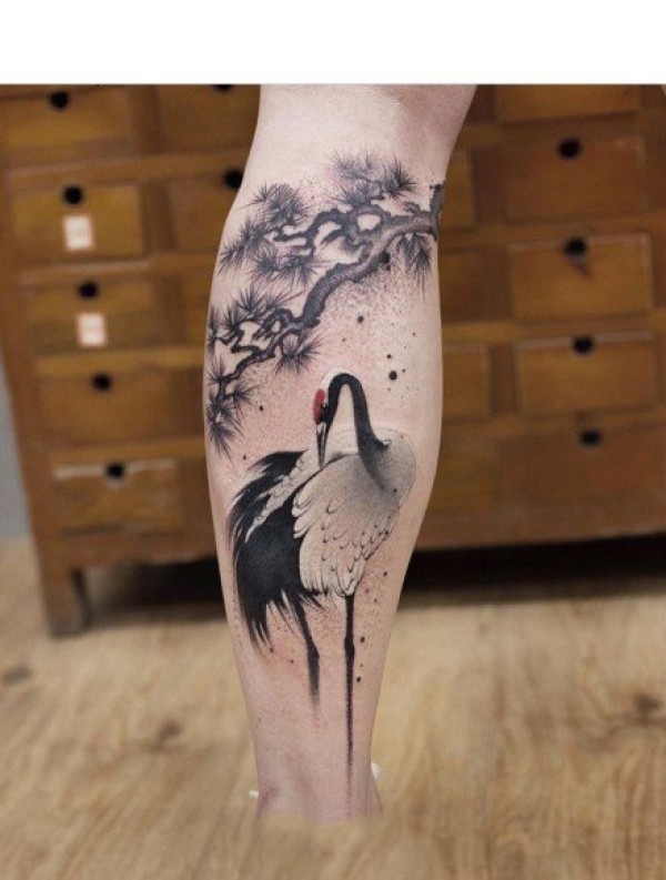 仙鹤纹身--中国风水墨元素的一组仙鹤纹身图案作品