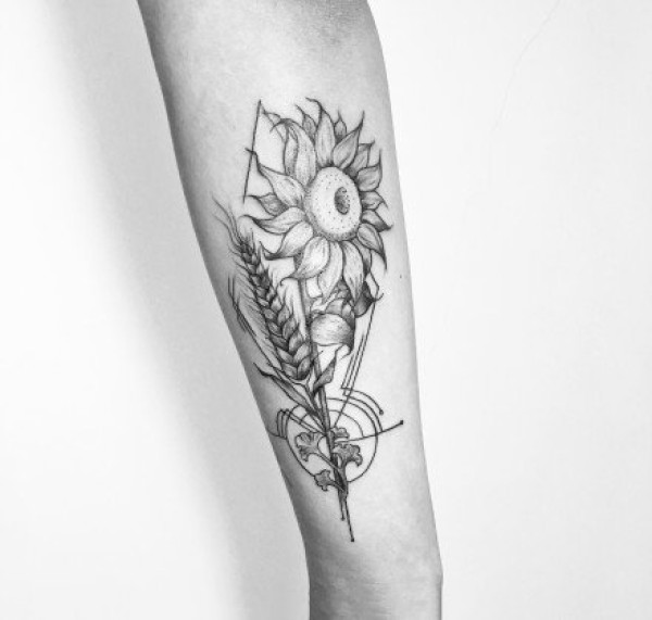向日葵纹身图案 绽放中的或黑灰或彩绘的向日葵纹身图案
