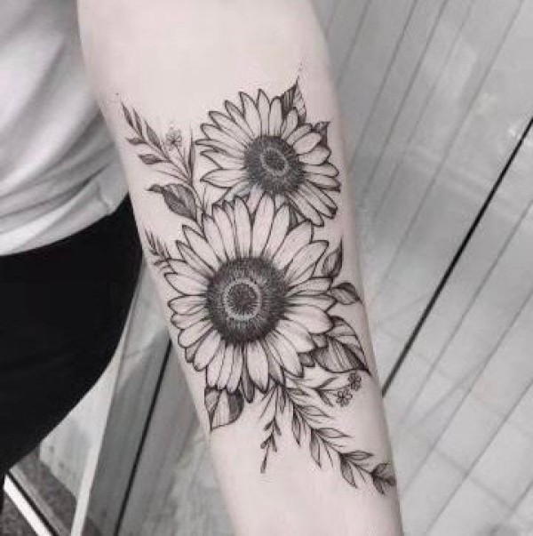 向日葵纹身图案 绽放中的或黑灰或彩绘的向日葵纹身图案