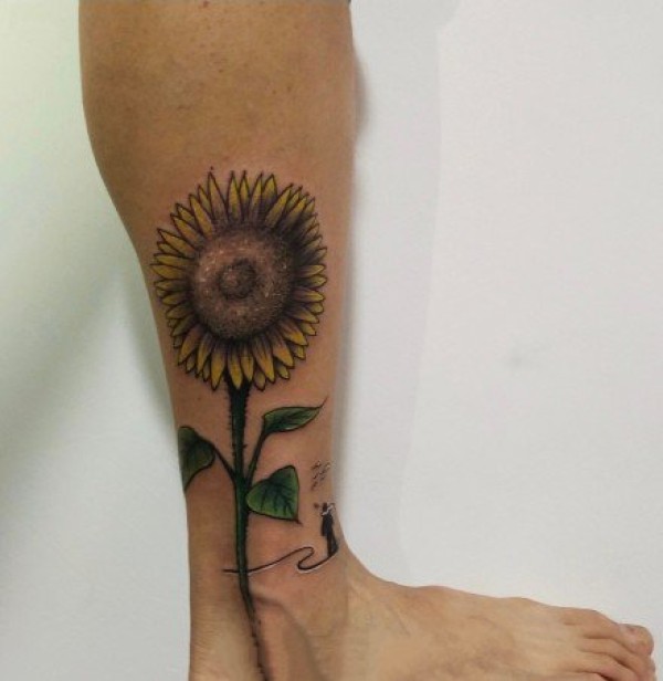 适合女生的一组很漂亮的小清新向日葵纹身图