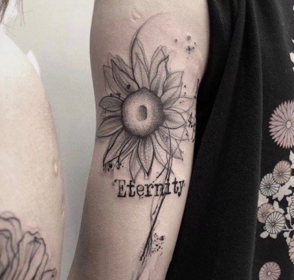 向日葵纹身图案 绽放中的或黑灰或彩绘的向日葵纹身图案