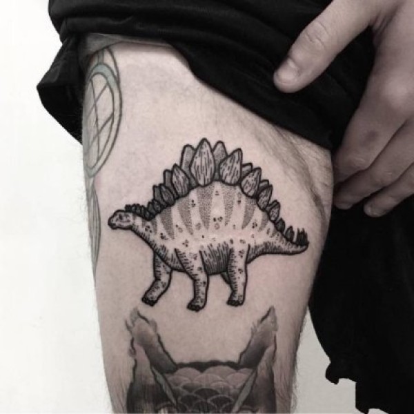 德国恐龙纹身 女生大腿上德国恐龙纹身图片