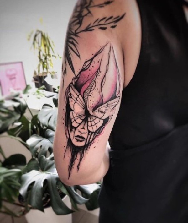 很有设计感的暗红色和黑色搭配纹身图片