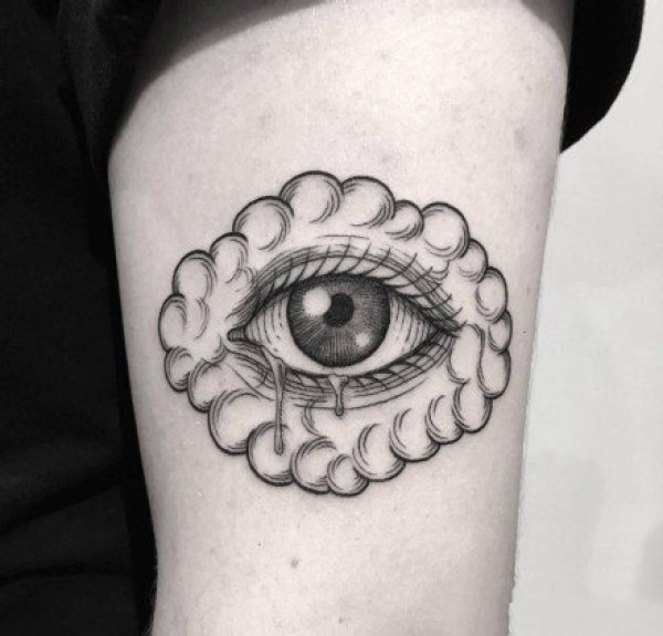 纹身眼睛纹身图案 男性手臂上穿透灵魂的黑色素描纹身眼睛纹身图案