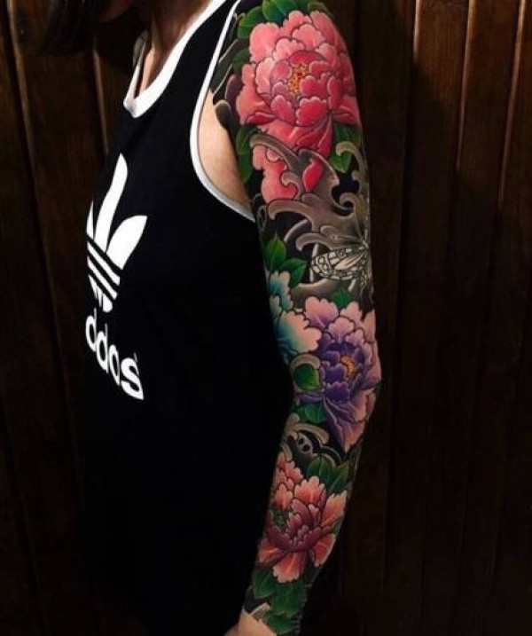 日式老传统牡丹花臂纹身作品图案9张