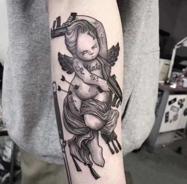 纹身小天使 西方爱神丘比特小天使的纹身图片