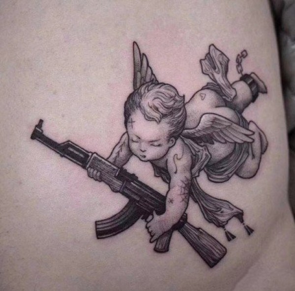 纹身小天使 西方爱神丘比特小天使的纹身图片